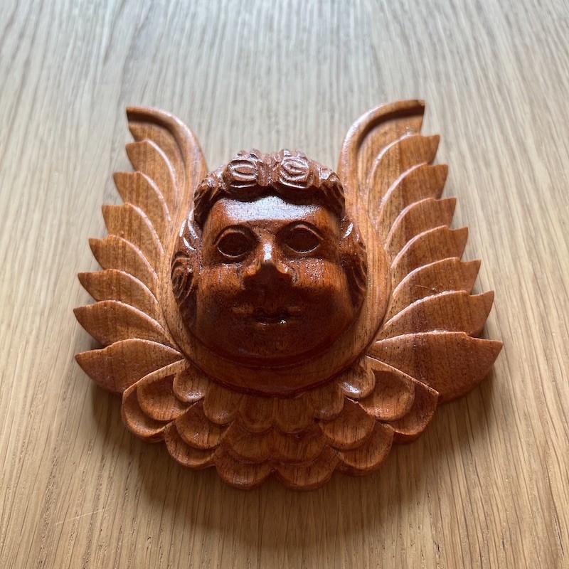 Trabajo de artesanos locales con métodos rústicos de tallado y pintado manualmente, utilizando retazos de "madera reciclada".