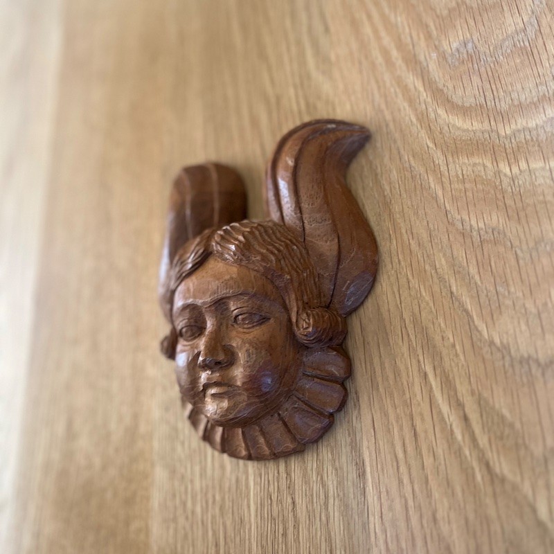Trabajo de artesanos locales con métodos rústicos de tallado y pintado manualmente, utilizando retazos de "madera reciclada".