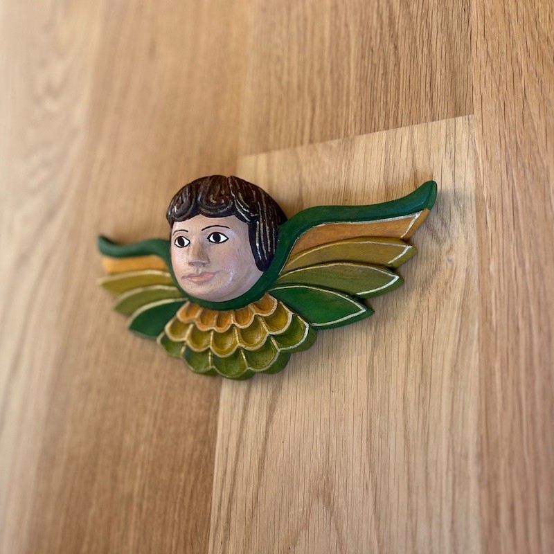 Trabajo de artesanos locales con métodos rústicos de tallado y pintado manualmente, utilizando retazos de "madera reciclada".