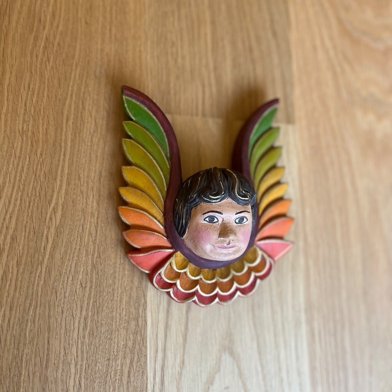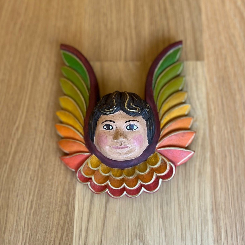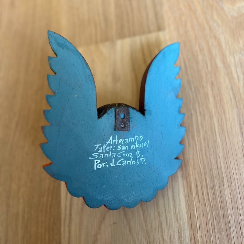 Trabajo de artesanos locales con métodos rústicos de tallado y pintado manualmente, utilizando retazos de "madera reciclada".