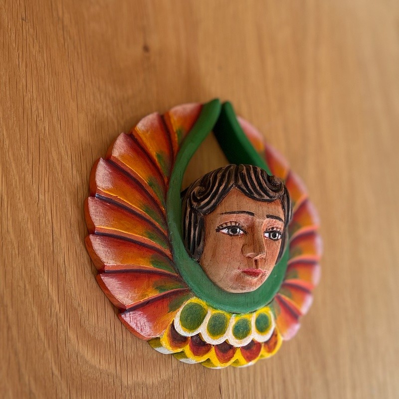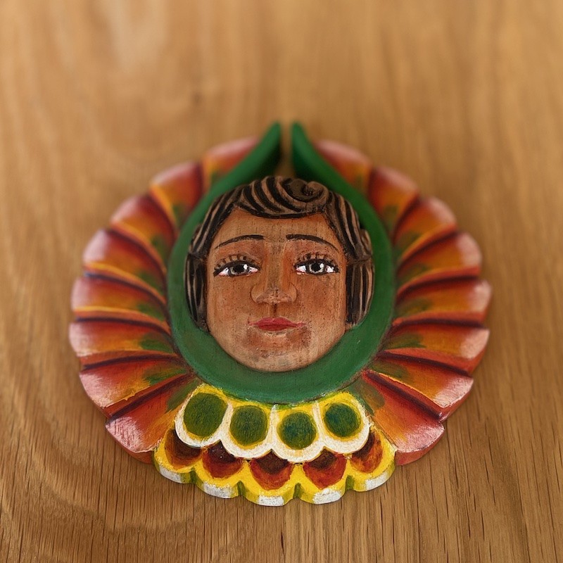 Trabajo de artesanos locales con métodos rústicos de tallado y pintado manualmente, utilizando retazos de "madera reciclada".
