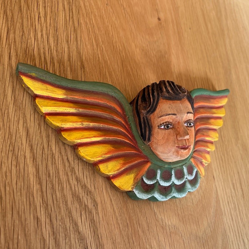 Trabajo de artesanos locales con métodos rústicos de tallado y pintado manualmente, utilizando retazos de "madera reciclada".
