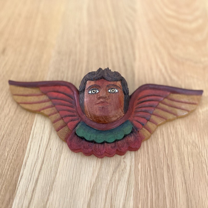 Trabajo de artesanos locales con métodos rústicos de tallado y pintado manualmente, utilizando retazos de "madera reciclada".